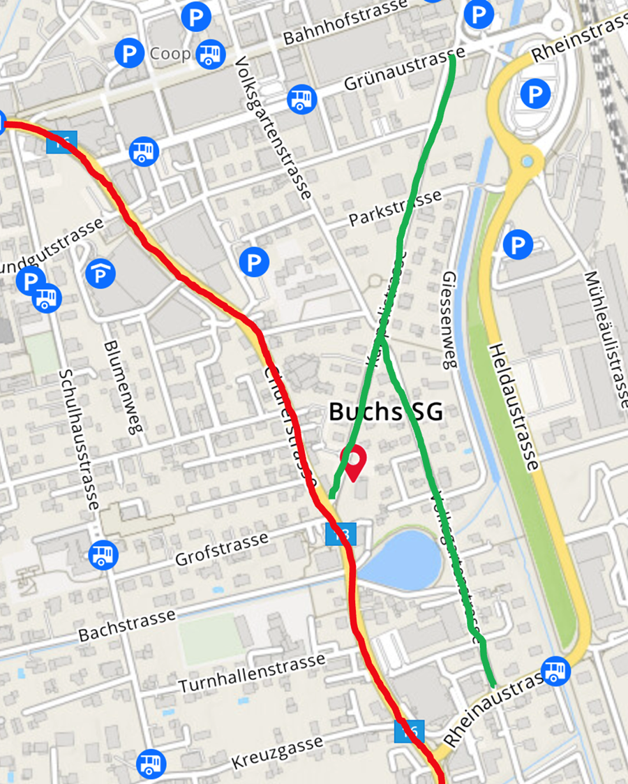 Die Churerstrasse ist Teil der Slow UP Strecke und somit für Autos und Motorräder gesperrt. Der Zugang zur Pfimi vor dem Gottesdienst sollte noch gewährleistet sein (Start Slow UP um 10.00 Uhr). Die Wegfahrt wird nur noch über die Kappelistrasse - Volksgartenstrasse oder via Bahnhof möglich sein. Die Autobahnauffahrt Buchs ist zugänglich.